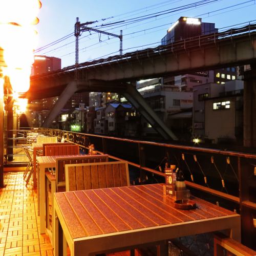 目の前には神田川◆解放感あるテラス席で総武線の架かる神田・秋葉原の街並みを眺めながらゆったりと食事ができます。デートや友人同士の飲み会にぴったりなお席です。